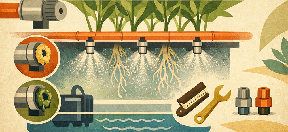Nozzle Maintenance: Misting nozzles can clog with mineral deposits or algae, requiring regular cleaning and occasional replacement to maintain proper droplet size and distribution.