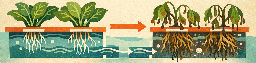 Root Disease Vulnerability: Continuous root submersion creates ideal conditions for water-borne pathogens like Pythium (root rot). Disease outbreaks can spread rapidly through connected raft beds, potentially destroying entire crops.