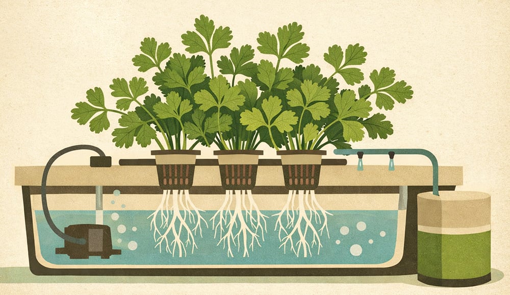 Regardless of photoperiod, cilantro bolts quickly above 75°F. Maintaining cool, steady temperatures is essential for hydroponic cilantro production. For year-round harvest availability, many commercial operations use successive planting techniques, which involve starting new crops every two to three weeks.