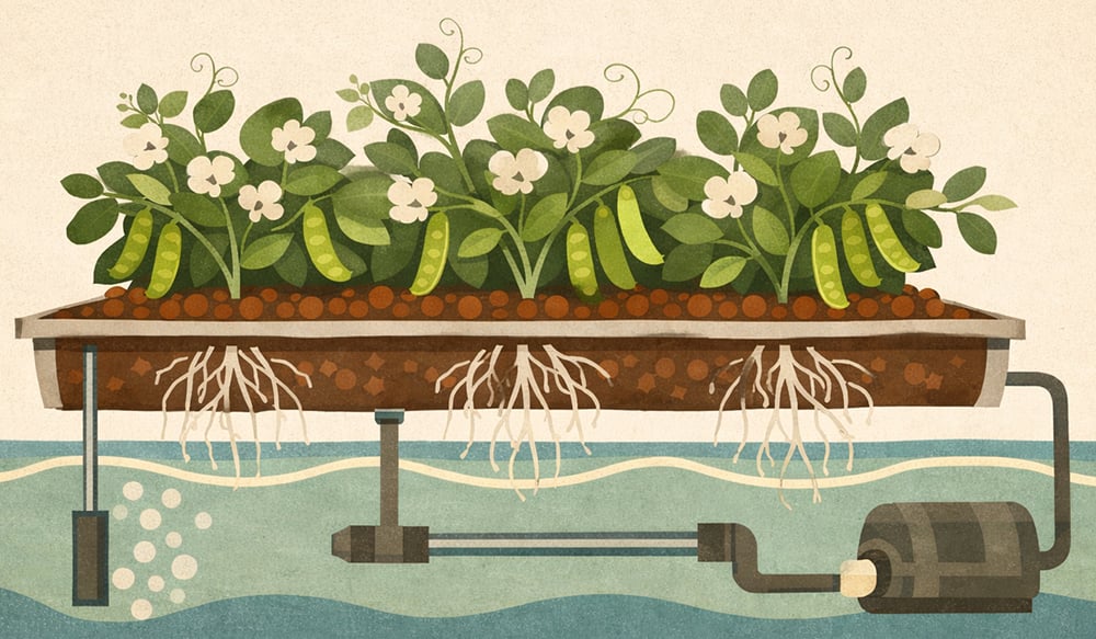 Dwarf pea and bush bean cultivars thrive in larger hydroponic systems. Steer clear of pole varieties because their rapid climbing growth overwhelms most systems and makes management difficult.