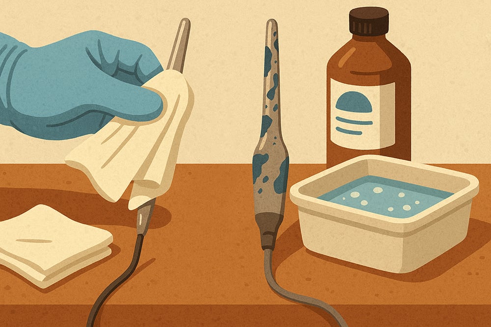 For probes with particularly stubborn contamination, ultrasonic cleaning provides enhanced efficacy without mechanical damage.