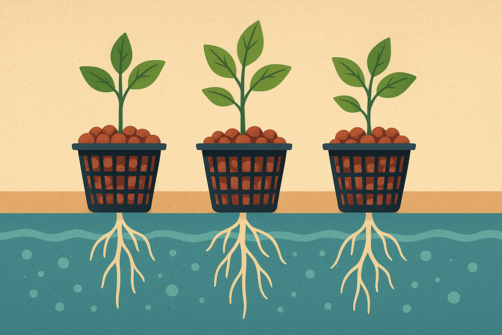 Net pots function as mesh containers that hold plants while allowing roots to grow freely into the solution below. These specialized containers provide structural support without restricting root development. The growing medium consists of inert materials like clay pellets, rockwool, or coconut coir that support seedlings during their initial development phases while remaining chemically neutral.