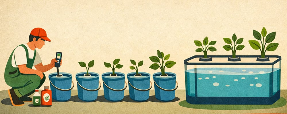 Managing nutrients is a key part of hydroponic systems. In DWC, individual buckets require testing and adjusting reservoirs must be completed separately. For example, if you are operating six DWC buckets, you need to measure pH and electrical conductivity (EC) six times, then make individual corrections to each container. This process can take up a lot of time, particularly during the frequent adjustments needed in early growth stages.