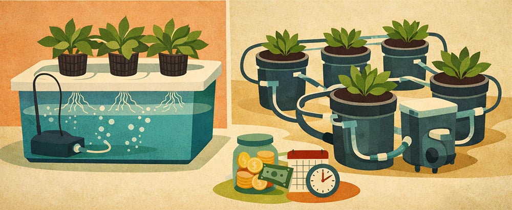 RDWCs have a higher initial cost as they require circulation pumps, larger reservoirs, and plumbing components. With more components comes more potential failure points. As RDWC is a more complex system, pump malfunctions or pipe blockages require immediate attention to prevent oxygen depletion.