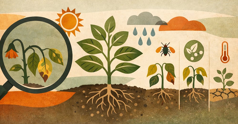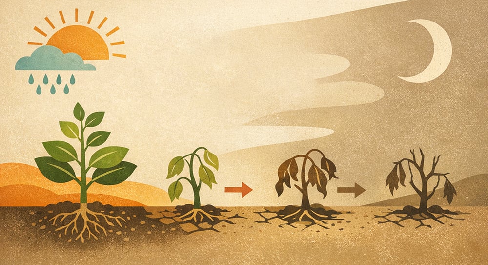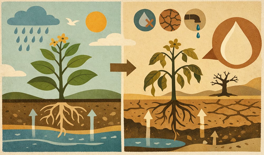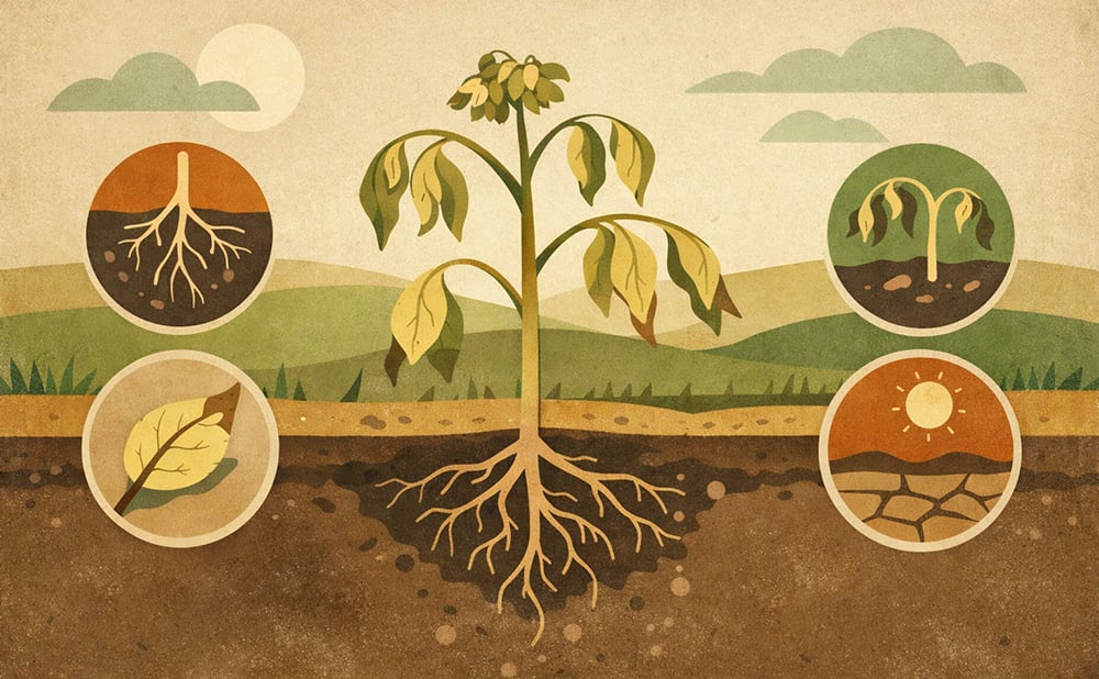 Soil pH also plays a role. When soils are either too acidic or too alkaline, they can interfere with water availability and root performance, meaning that even when moisture is present, the plant cannot take it up effectively.