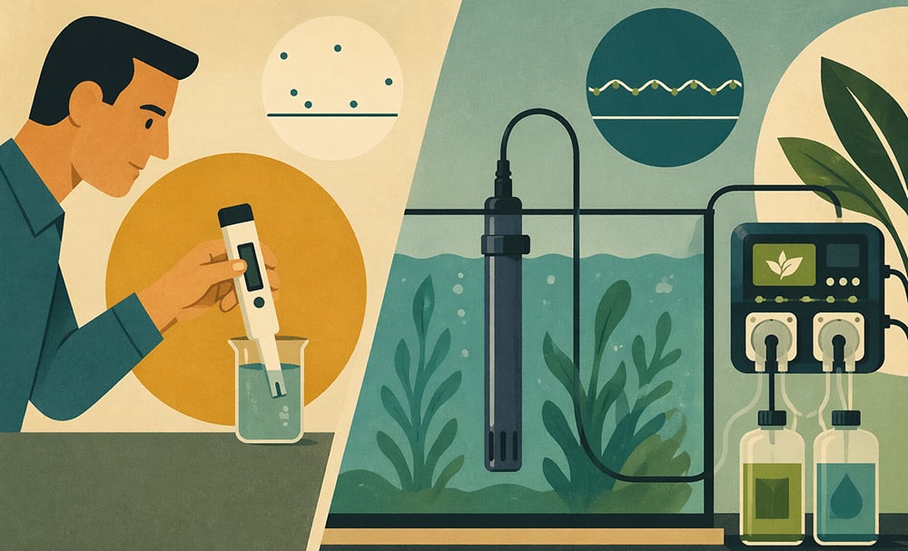 EC monitoring prevents both underfeeding and nutrient burn, which becomes critical because different mediums interact differently with nutrients. Coir’s CEC means initial EC readings may not reflect what’s actually available to plants, and continuous monitoring with lab-grade probes reveals these dynamics in real-time. Temperature affects both pH and nutrient solubility—a 5°C swing can shift your pH by 0.015 units and dramatically change how your plants access iron and phosphorus. Integrated temperature compensation ensures your readings reflect actual growing conditions, not laboratory standards.