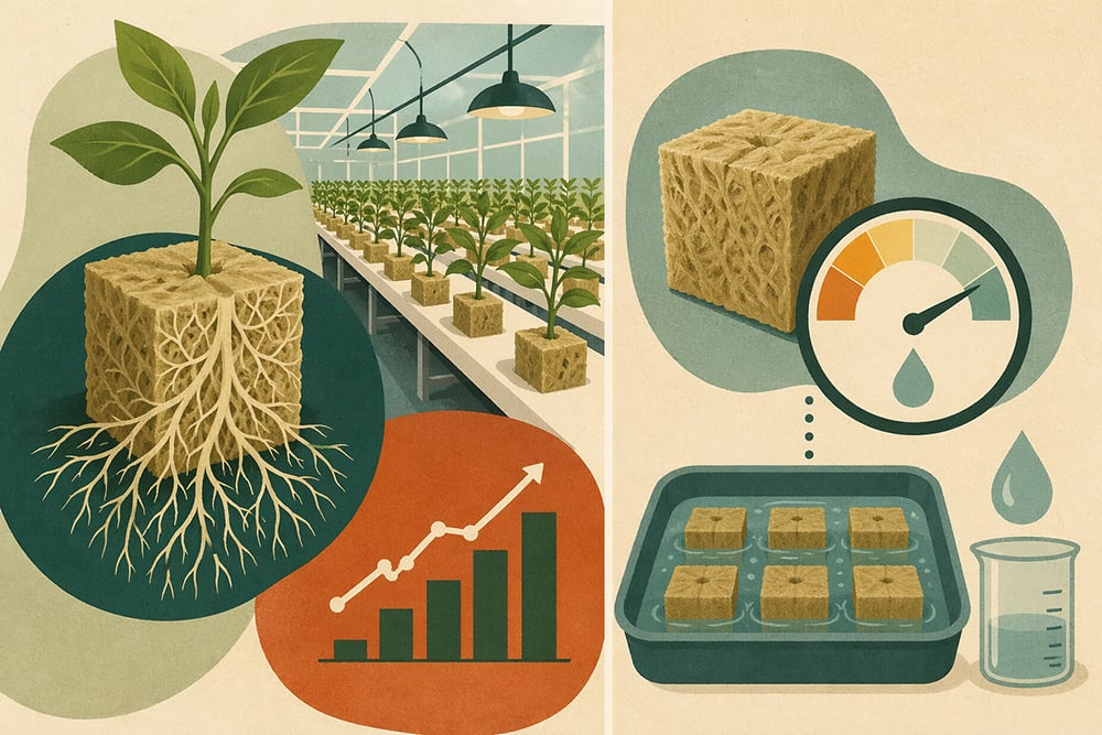 For sustainability, coir or growstones work well when reuse and early monitoring are planned. At commercial scale, rockwool remains the standard thanks to its consistency and automation compatibility, provided pH is tightly controlled with lab-grade sensors.