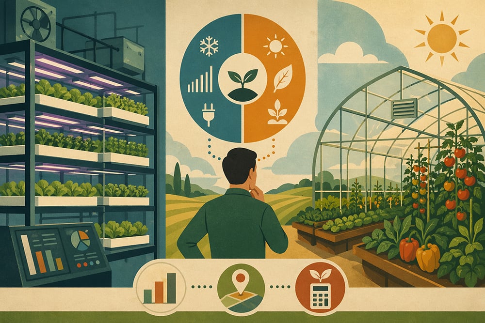 Vertical farming isn’t “better” than greenhouse farming, it’s simply different. Vertical farms maximize yield per square meter with total environmental control but high energy costs, while greenhouses leverage free sunlight for lower operating costs and broader crop flexibility. The right choice depends on data, location, and crop economics.
