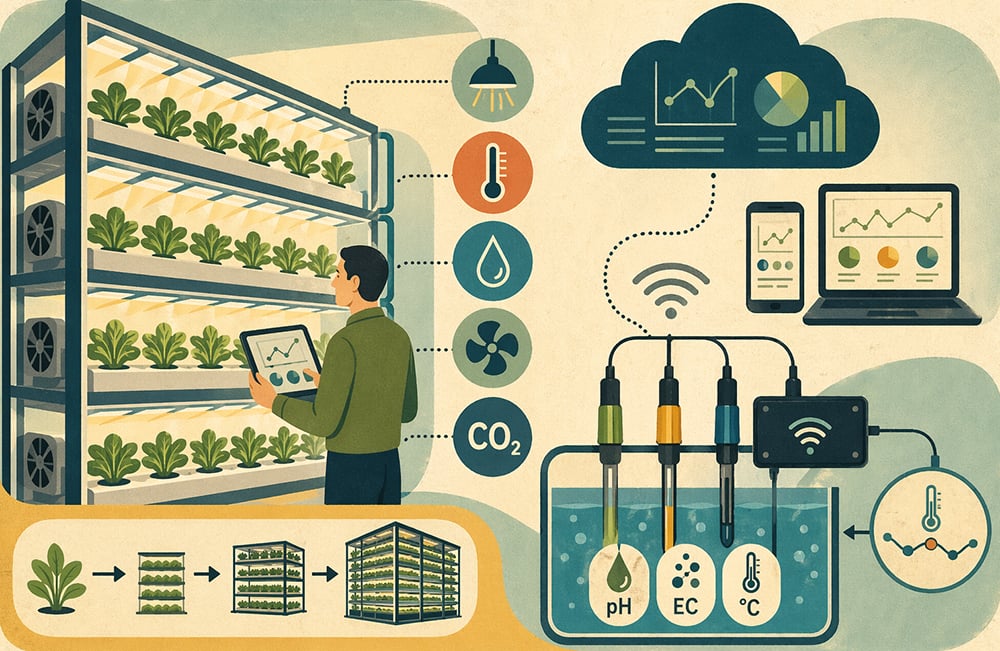 This degree of control necessitates exceptionally accurate monitoring. Nutrient lockout results from any pH drift outside of the 5.5–6.5 range in vertical farming, where nutrient solutions may serve hundreds of plants at once. Every increasing tier requires separate monitoring of light intensity, air temperature, humidity, and frequently CO2 levels; these requirements increase with productivity density. This problem is solved by Atlas Scientific’s Wi-Fi Hydroponics Kit, which offers continuous, cloud-connected pH, electrical conductivity, and temperature monitoring with automatic temperature compensation, essential for controlling the high-density nutrient delivery needed for vertical systems.