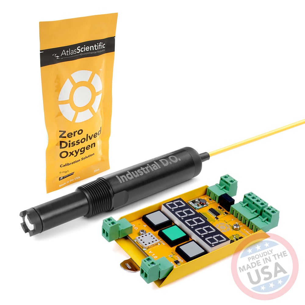 • 1x Industrial Dissolved Oxygen Transmitter • 1x Industrial Dissolved Oxygen Probe • 3x 20ml Zero Dissolved Oxygen Calibration Solution Pouches Probe Max Pressure: 100 PSI Probe Cable length: 3 Meters (10′) Probe Weight: 396 grams International standard: ISO 5814 compliant (determination of dissolved oxygen)