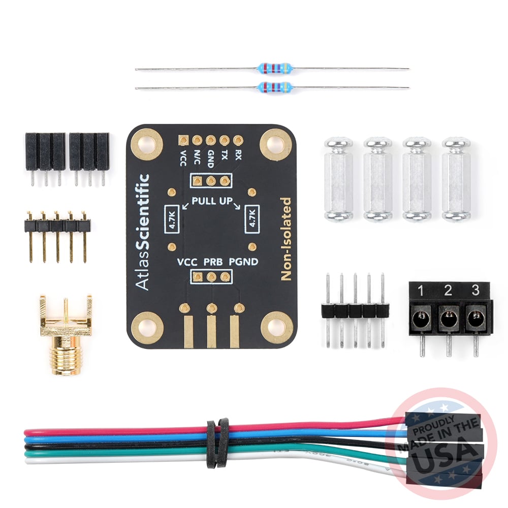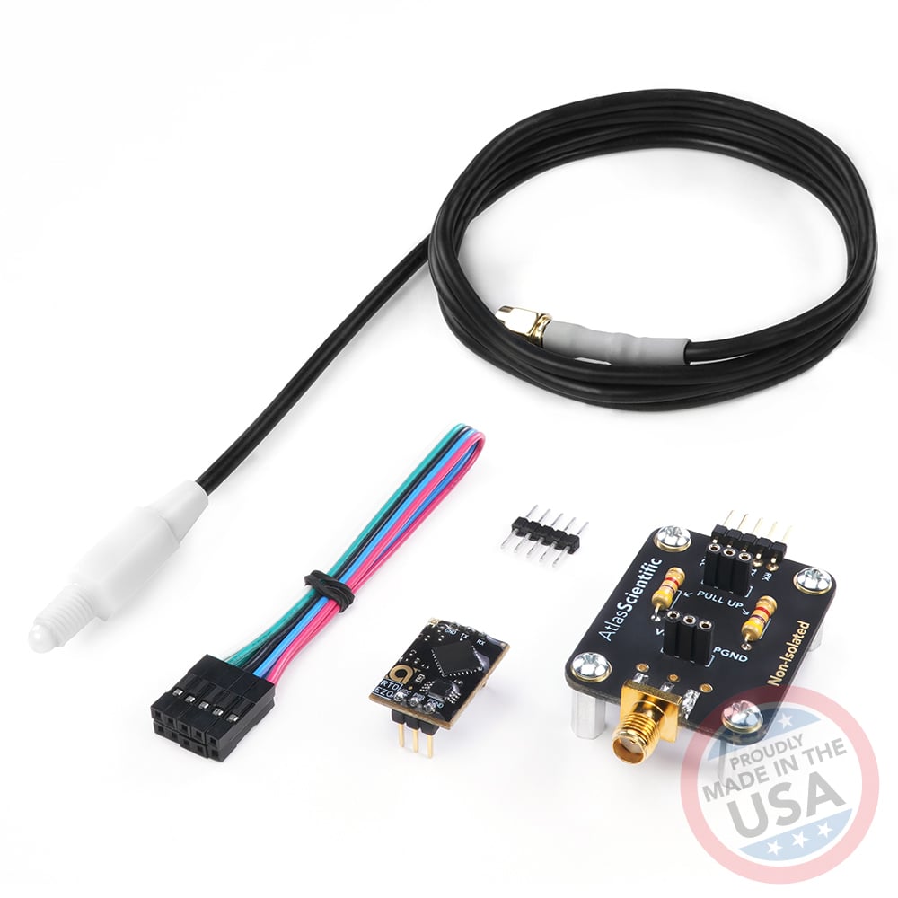 • 1x Micro PT-1000 Temperature Probe • 1x EZO™ RTD Temperature Circuit • 1x EZO™ Carrier Board *non-isolated* (Assembly required) Full temperature sensing range -200˚C to 200˚C Cable length 61cm (2′)